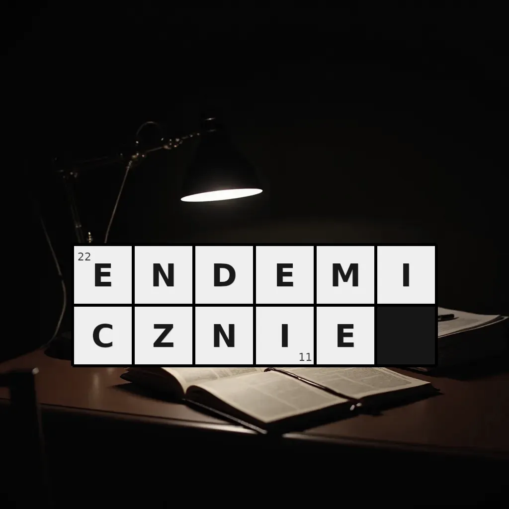 Słowo „endemicznie” ma 11 znaków (bez spacji i łączników).