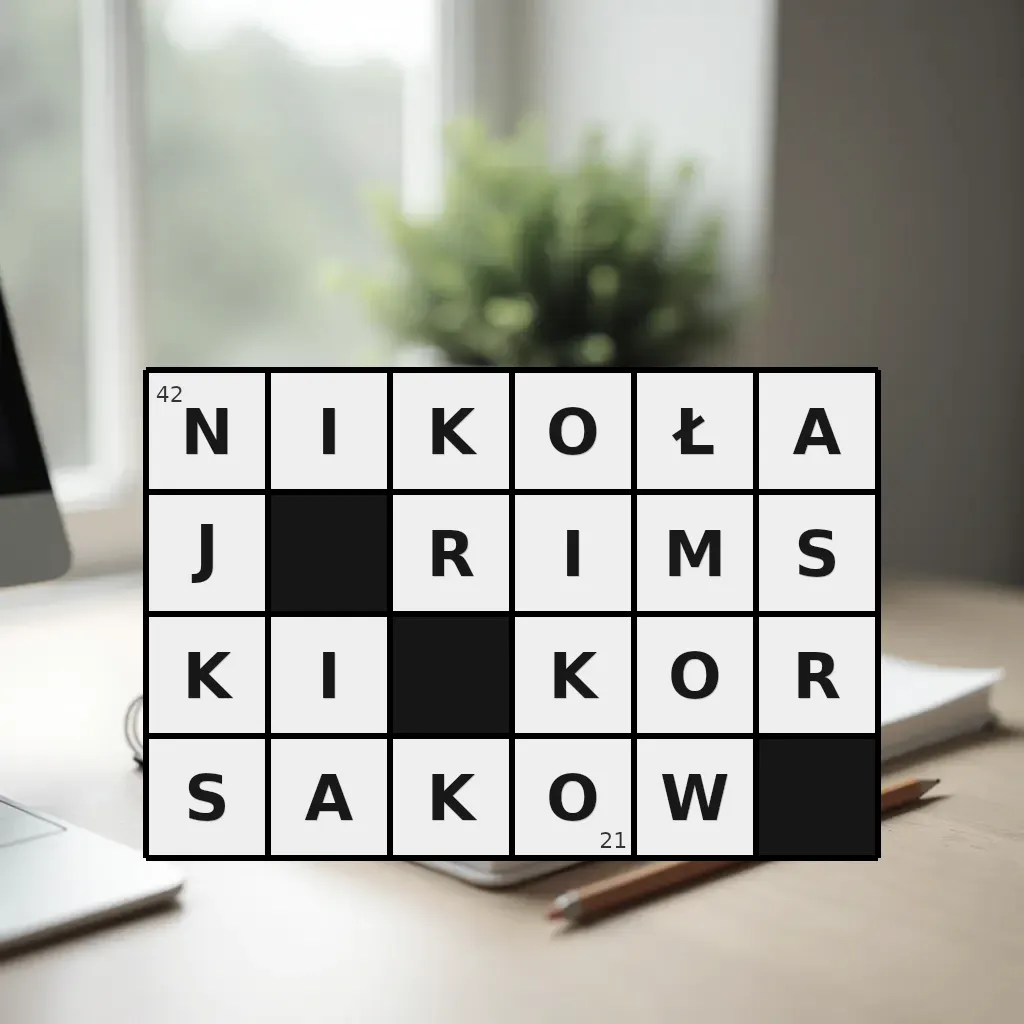 Słowo „nikołaj rimski-korsakow” ma 21 znak (bez spacji i łączników).