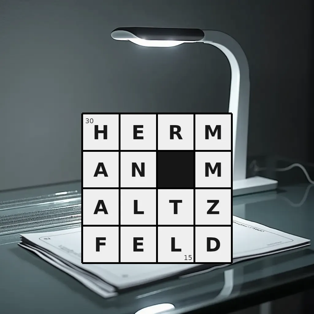 Słowo „herman maltzfeld” ma 15 znaków (bez spacji i łączników).