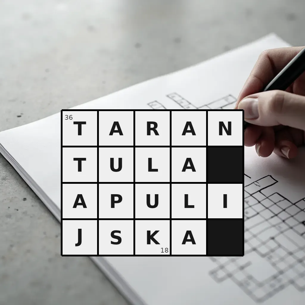 Słowo „tarantula apulijska” ma 18 znaków (bez spacji i łączników).
