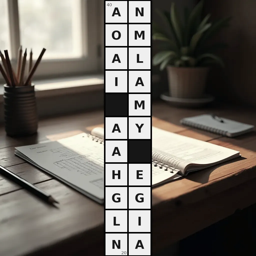Słowo „anomalia maya-hegglina” ma 20 znaków (bez spacji i łączników).