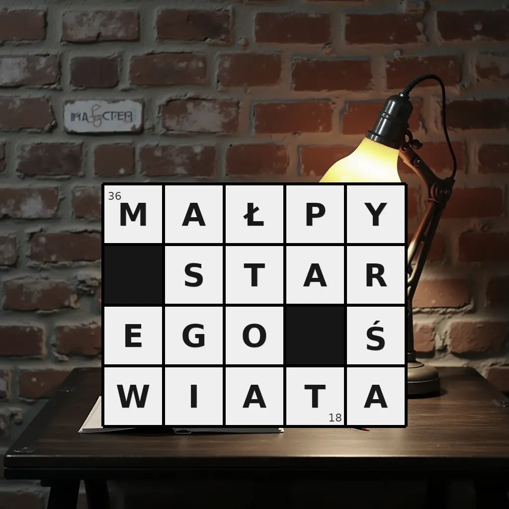 Słowo „małpy starego świata” ma 18 znaków (bez spacji i łączników).