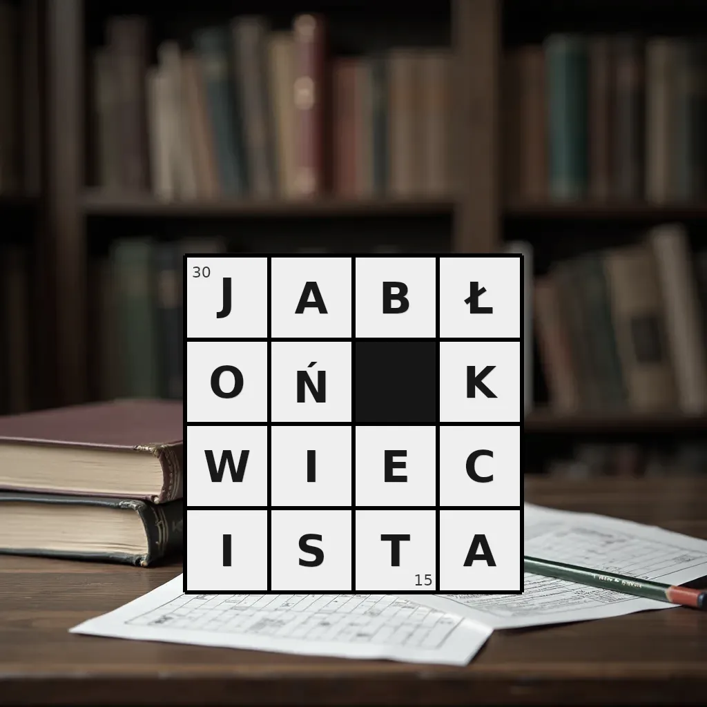 Słowo „jabłoń kwiecista” ma 15 znaków (bez spacji i łączników).