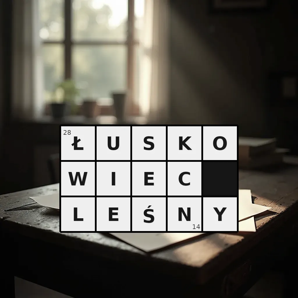 Słowo „łuskowiec leśny” ma 14 znaków (bez spacji i łączników).