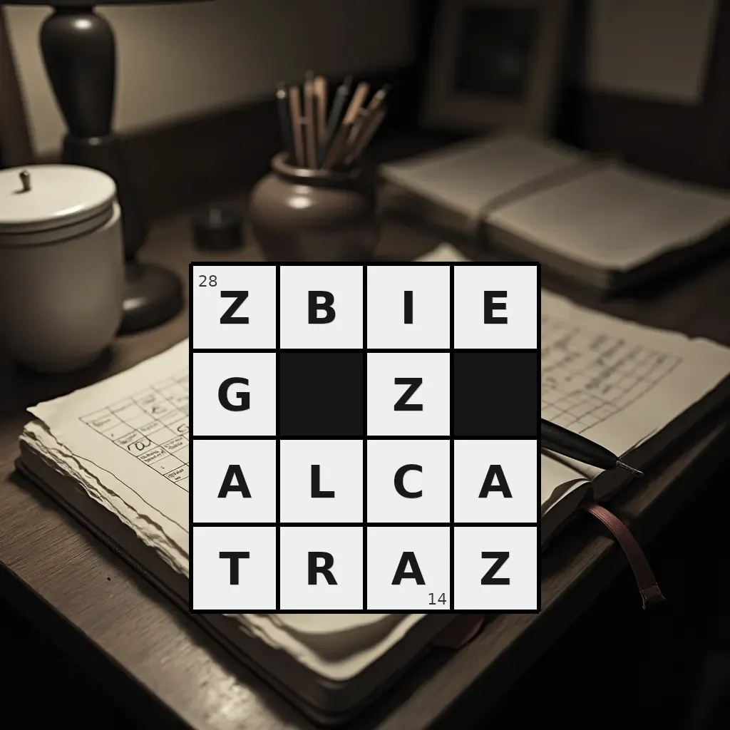 Słowo „zbieg z alcatraz” ma 14 znaków (bez spacji i łączników).