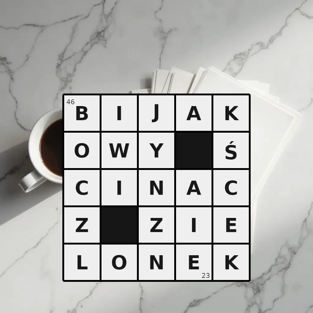 Zawiera litery: A, A, B, C, C, E, E, I, I, I, J, K, K, L, N, N, O, O, W, Y, Z, Z, Ś