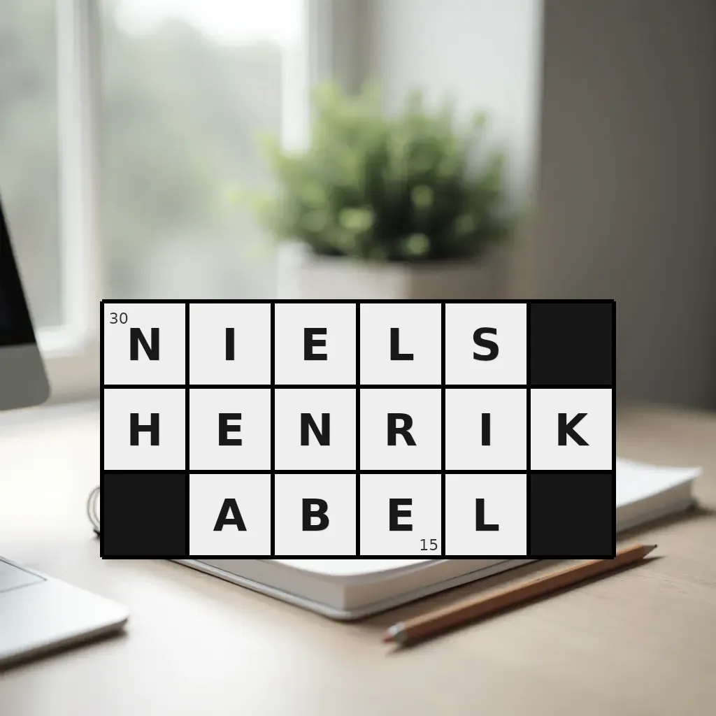 Słowo „niels henrik abel” ma 15 znaków (bez spacji i łączników).