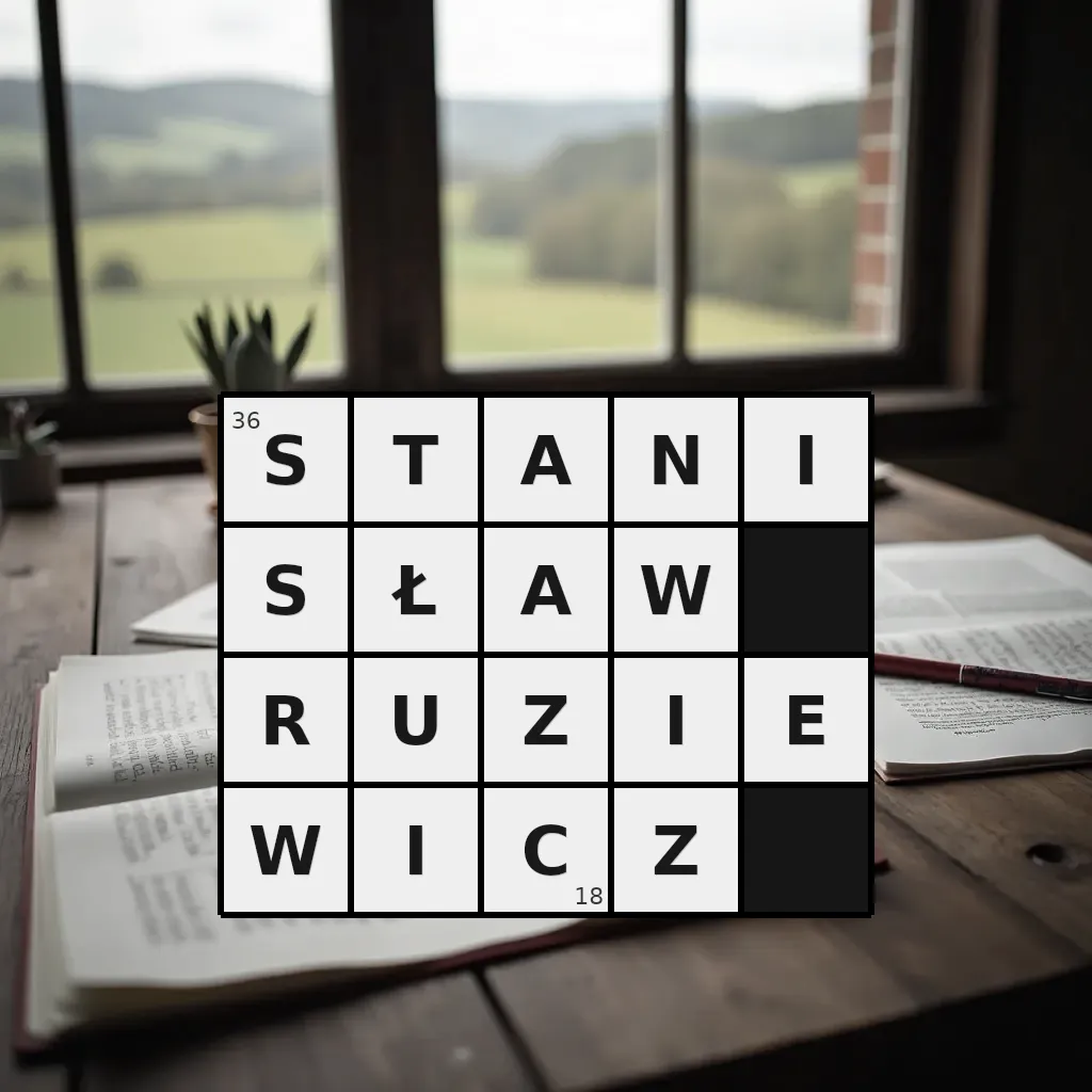 Słowo „stanisław ruziewicz” ma 18 znaków (bez spacji i łączników).