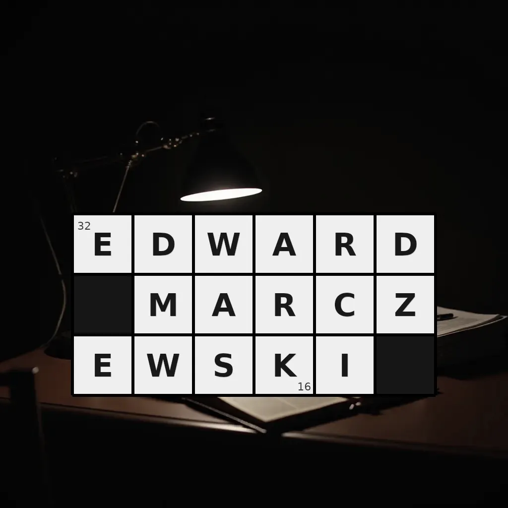 Słowo „edward marczewski” ma 16 znaków (bez spacji i łączników).