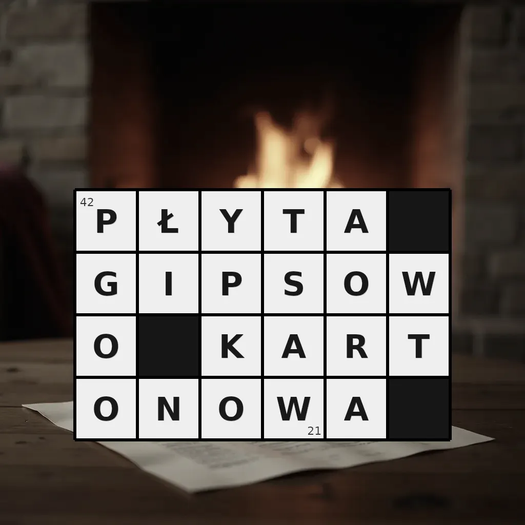Słowo „płyta gipsowo-kartonowa” ma 21 znak (bez spacji i łączników).