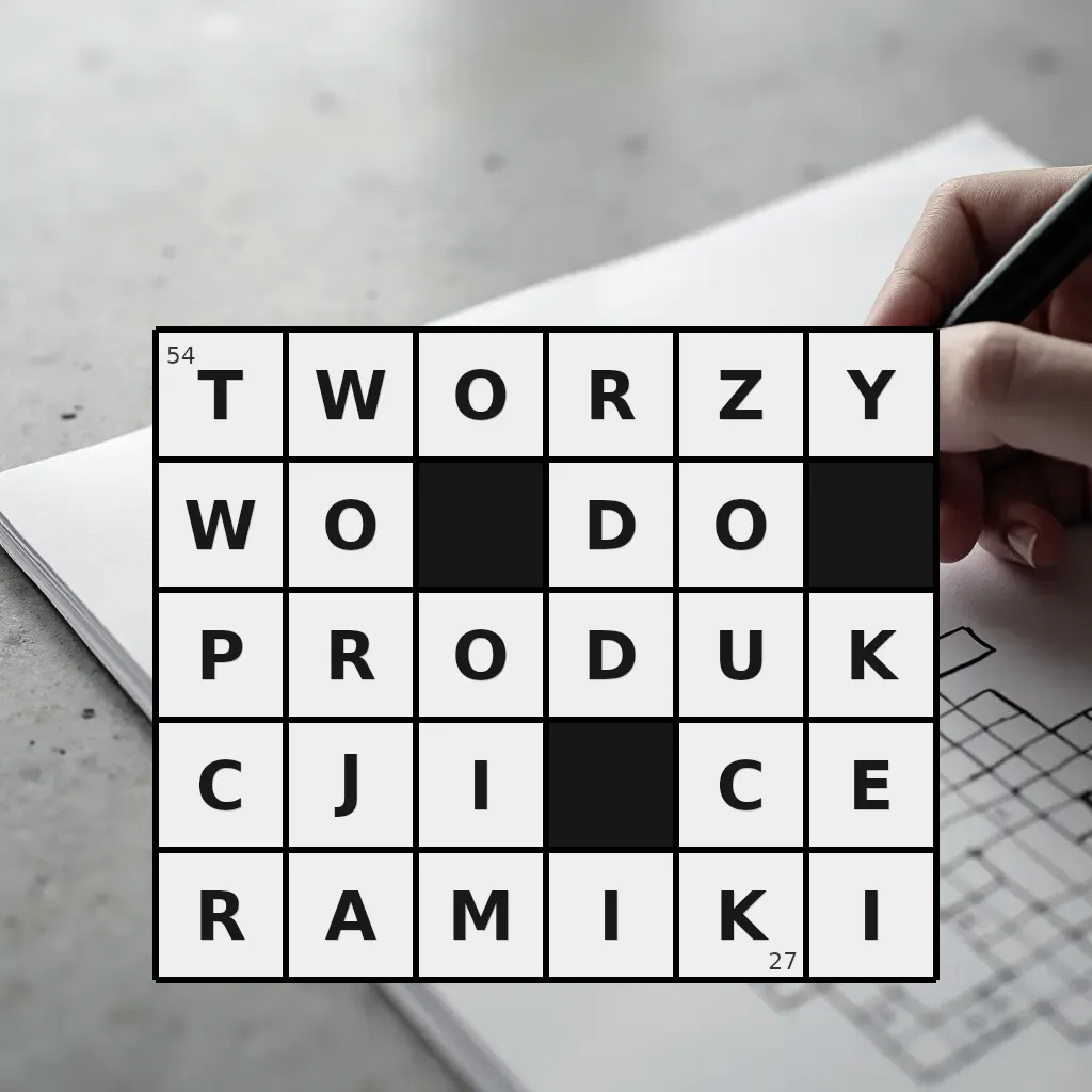 Słowo „tworzywo do produkcji ceramiki” ma 27 znaków (bez spacji i łączników).