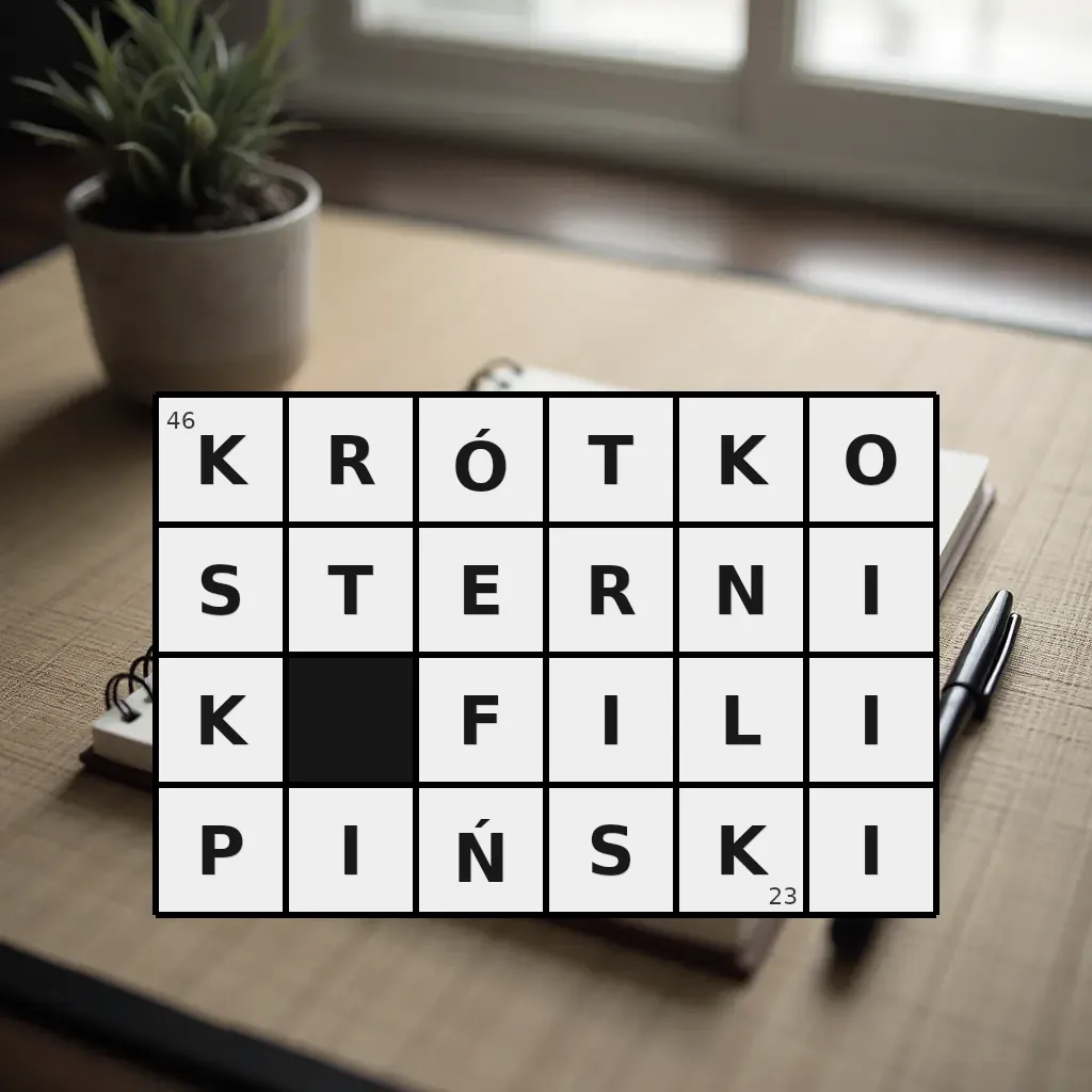 Słowo „krótkosternik filipiński” ma 23 znaki (bez spacji i łączników).