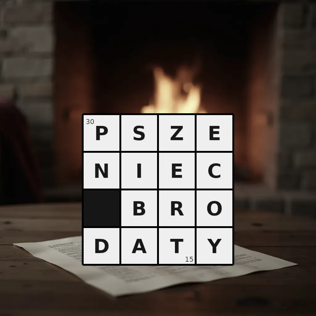 Słowo „pszeniec brodaty” ma 15 znaków (bez spacji i łączników).