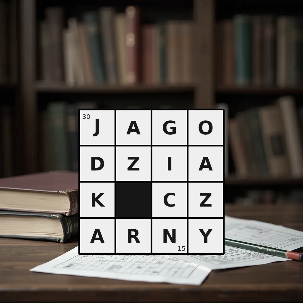 Słowo „jagodziak czarny” ma 15 znaków (bez spacji i łączników).