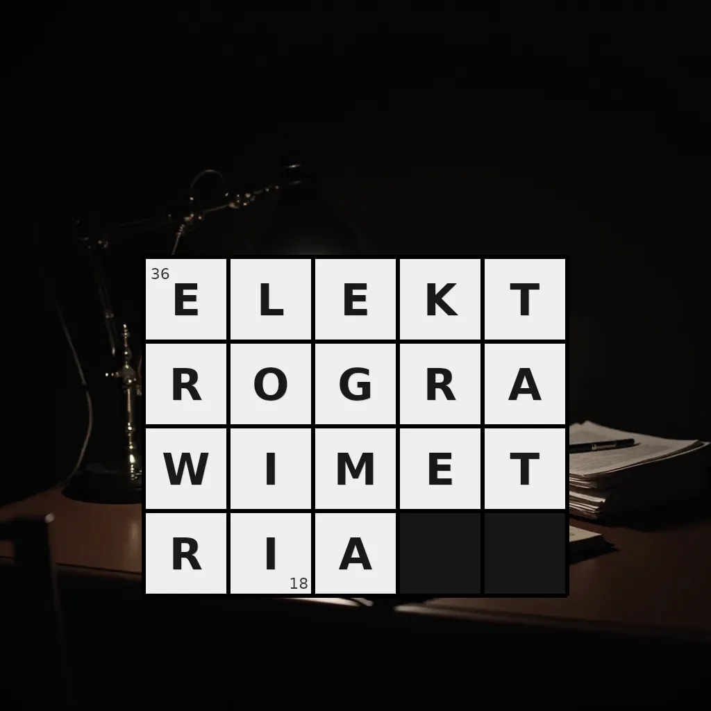Słowo „elektrograwimetria” ma 18 znaków (bez spacji i łączników).