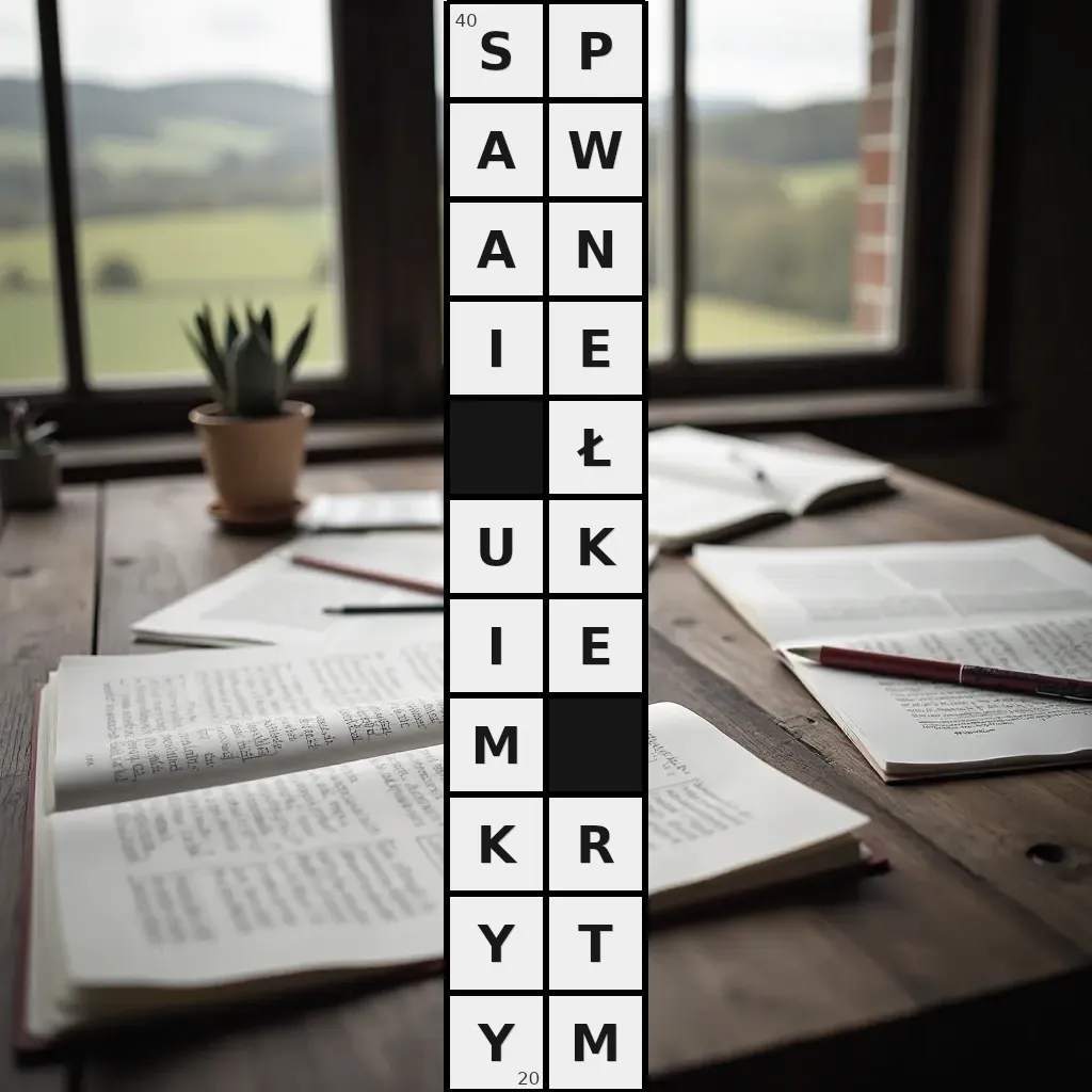 Zawiera litery: A, A, E, E, I, I, K, K, M, M, N, P, R, S, T, U, W, Y, Y, Ł