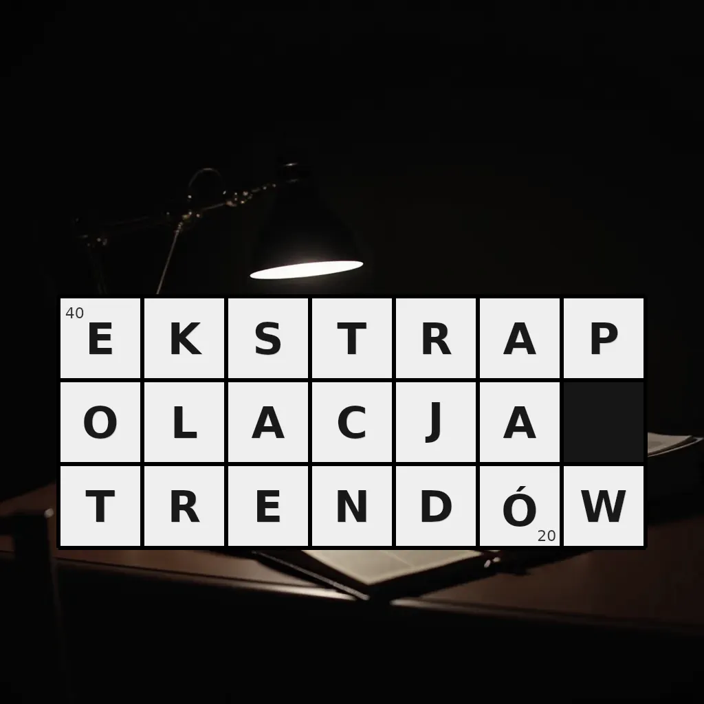 Słowo „ekstrapolacja trendów” ma 20 znaków (bez spacji i łączników).