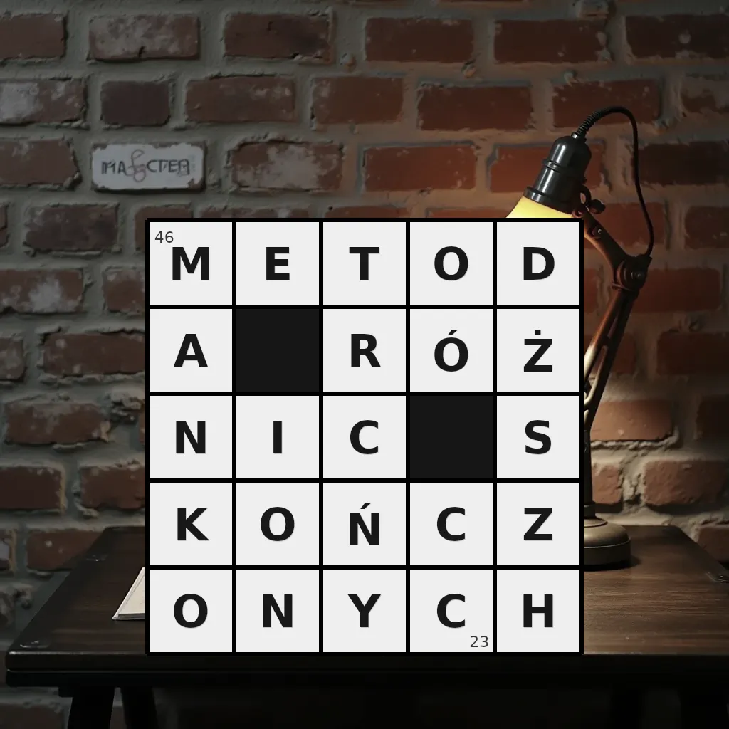 Słowo „metoda różnic skończonych” ma 23 znaki (bez spacji i łączników).