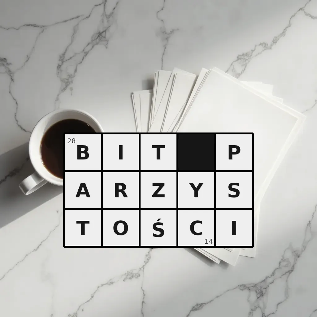 Słowo „bit parzystości” ma 14 znaków (bez spacji i łączników).