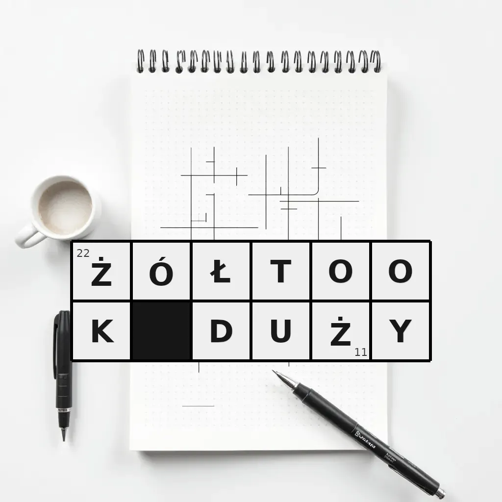Słowo „żółtook duży” ma 11 znaków (bez spacji i łączników).