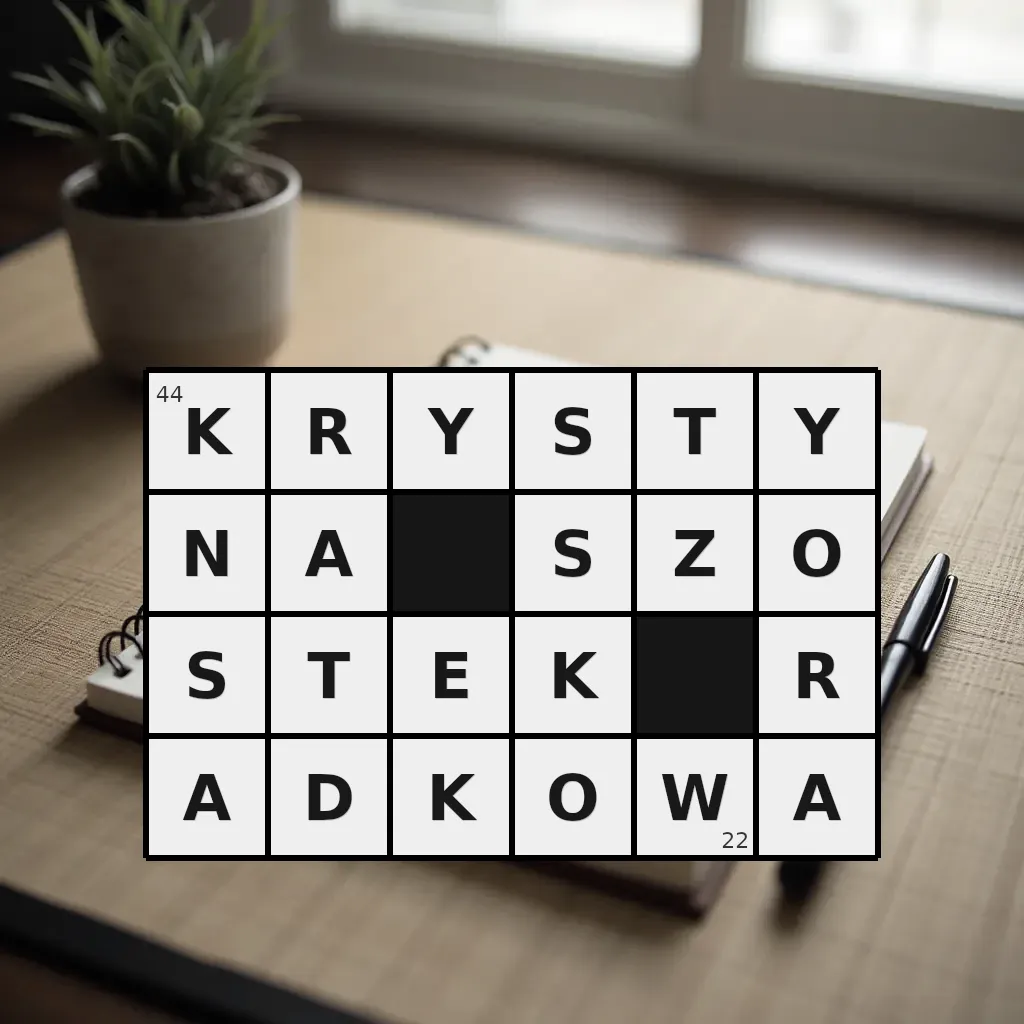 Słowo „krystyna szostek-radkowa” ma 22 znaki (bez spacji i łączników).