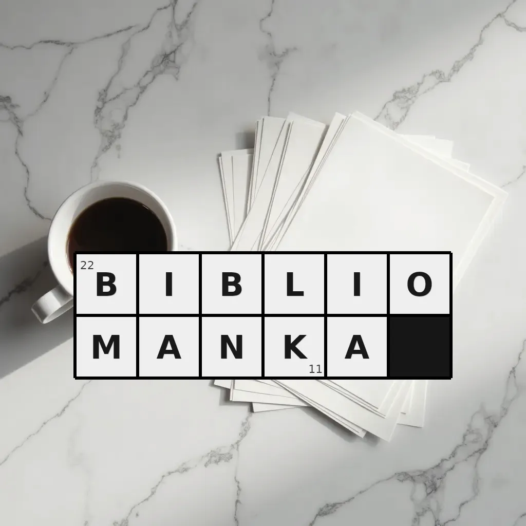 Słowo „bibliomanka” ma 11 znaków (bez spacji i łączników).