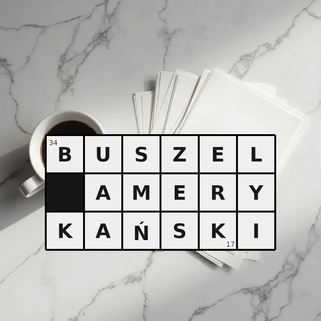 Słowo „buszel amerykański” ma 17 znaków (bez spacji i łączników).