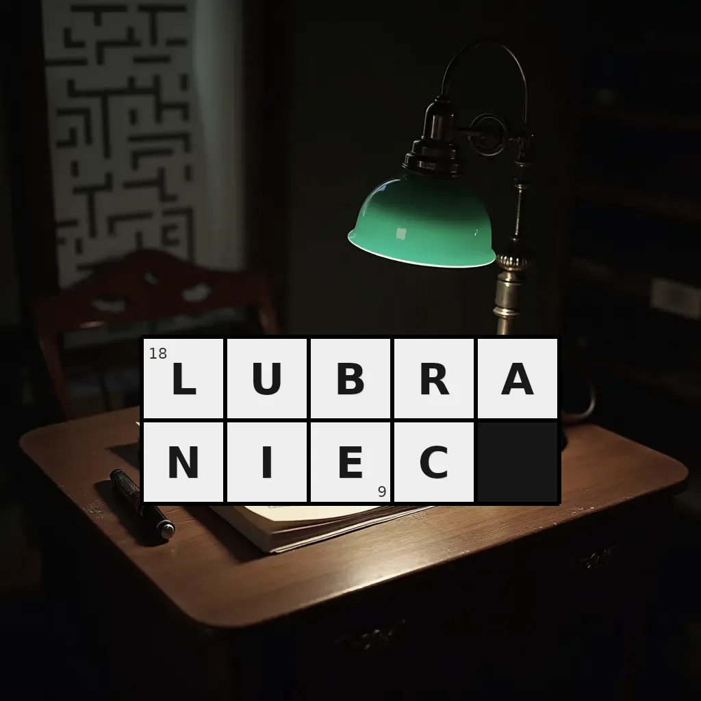 Słowo „lubraniec” ma 9 znaków (bez spacji i łączników).