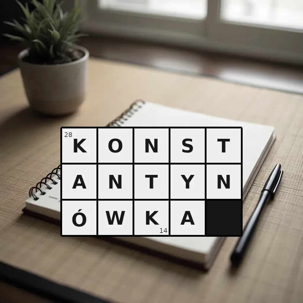 Słowo „konstantynówka” ma 14 znaków (bez spacji i łączników).