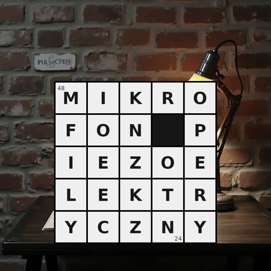 Słowo „mikrofon piezoelektryczny” ma 24 znaki (bez spacji i łączników).