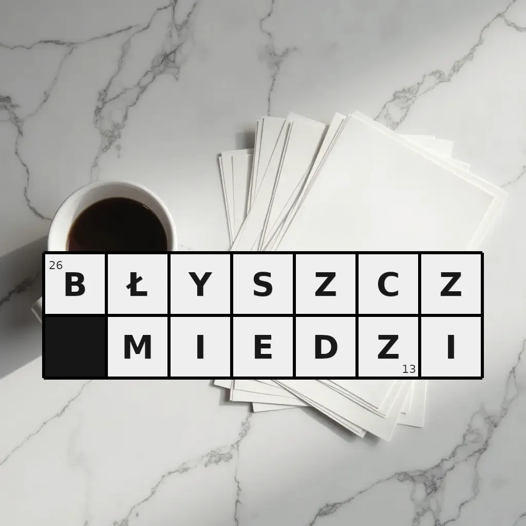 Słowo „błyszcz miedzi” ma 13 znaków (bez spacji i łączników).
