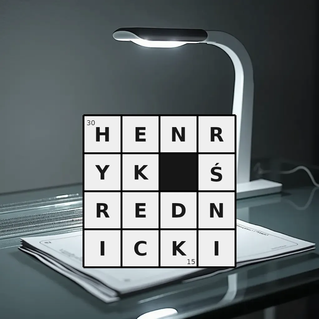 Słowo „henryk średnicki” ma 15 znaków (bez spacji i łączników).