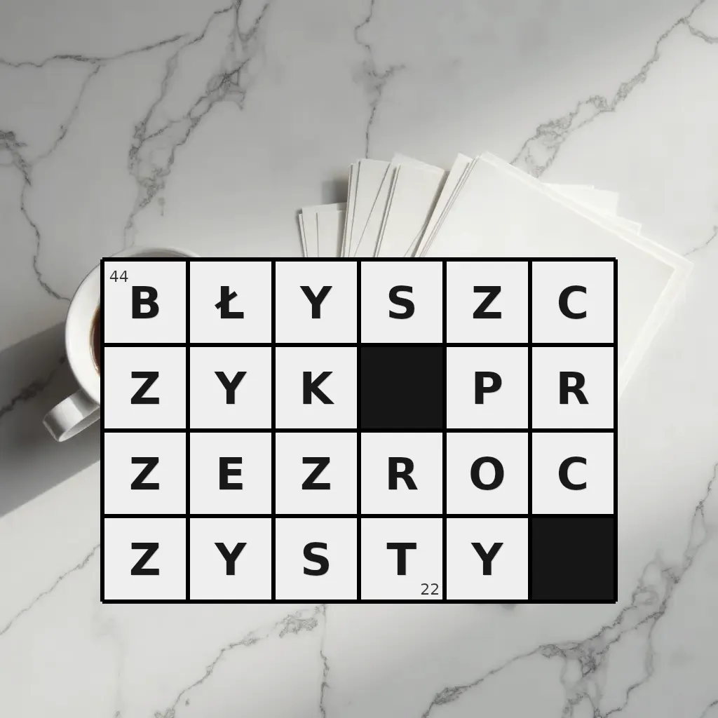 Słowo „błyszczyk przezroczysty” ma 22 znaki (bez spacji i łączników).