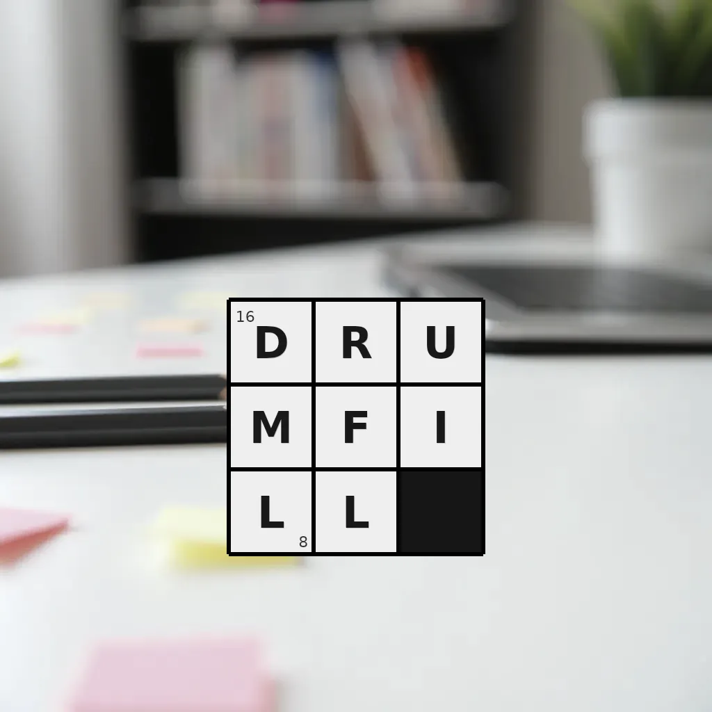 Słowo „drumfill” ma 8 znaków (bez spacji i łączników).