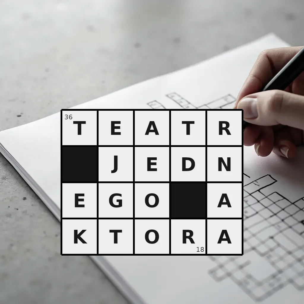 Słowo „teatr jednego aktora” ma 18 znaków (bez spacji i łączników).