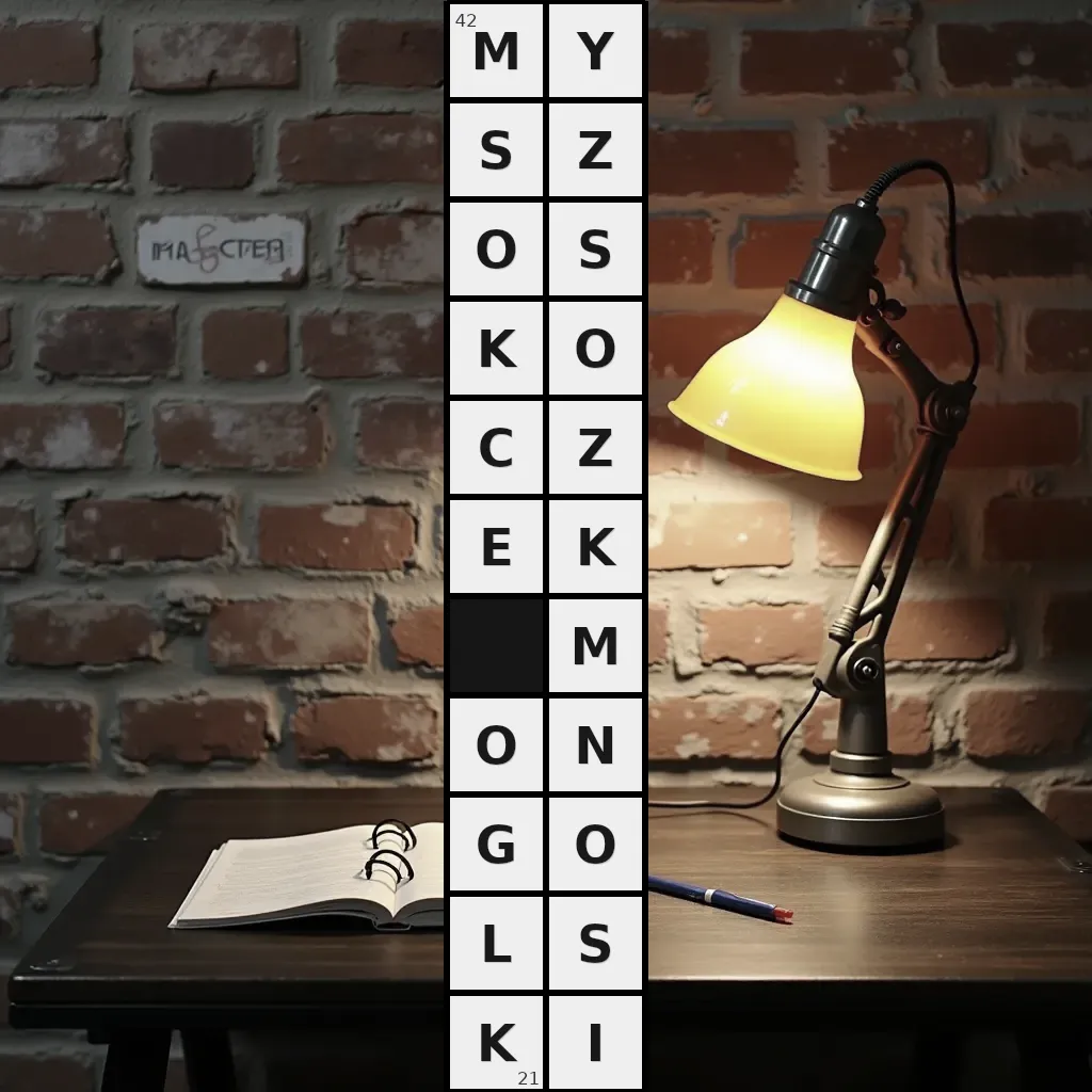 Słowo „myszoskoczek mongolski” ma 21 znak (bez spacji i łączników).