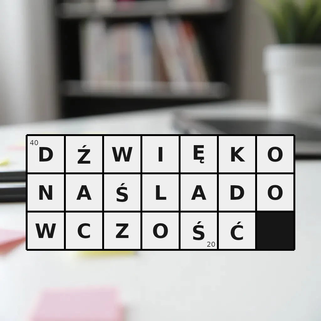 Słowo „dźwiękonaśladowczość” ma 20 znaków (bez spacji i łączników).