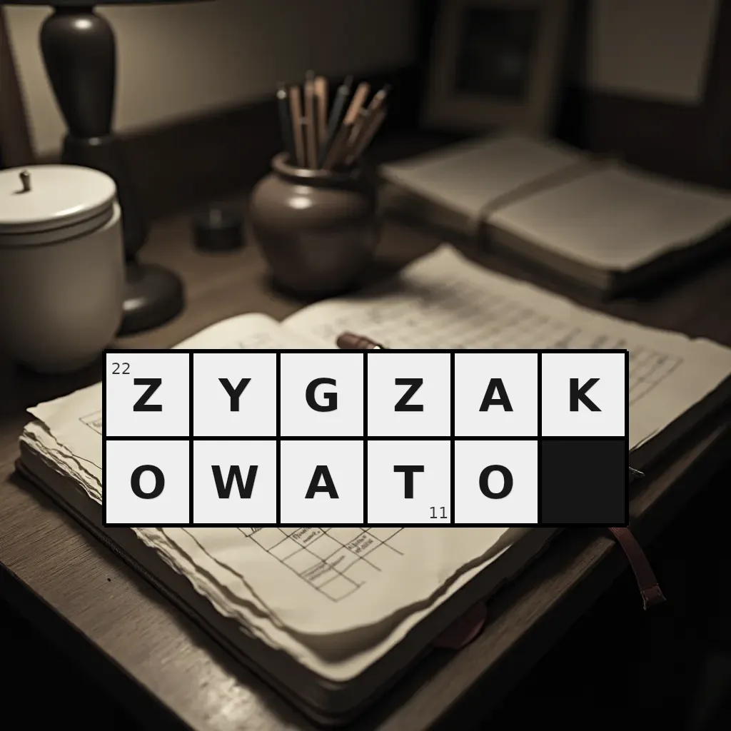 Zawiera litery: A, A, G, K, O, O, T, W, Y, Z, Z