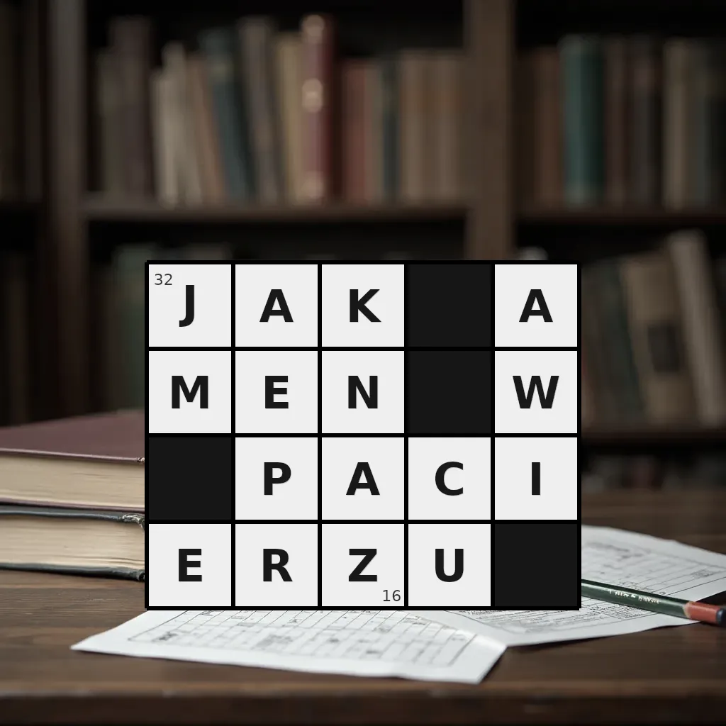 Zawiera litery: A, A, A, C, E, E, I, J, K, M, N, P, R, U, W, Z