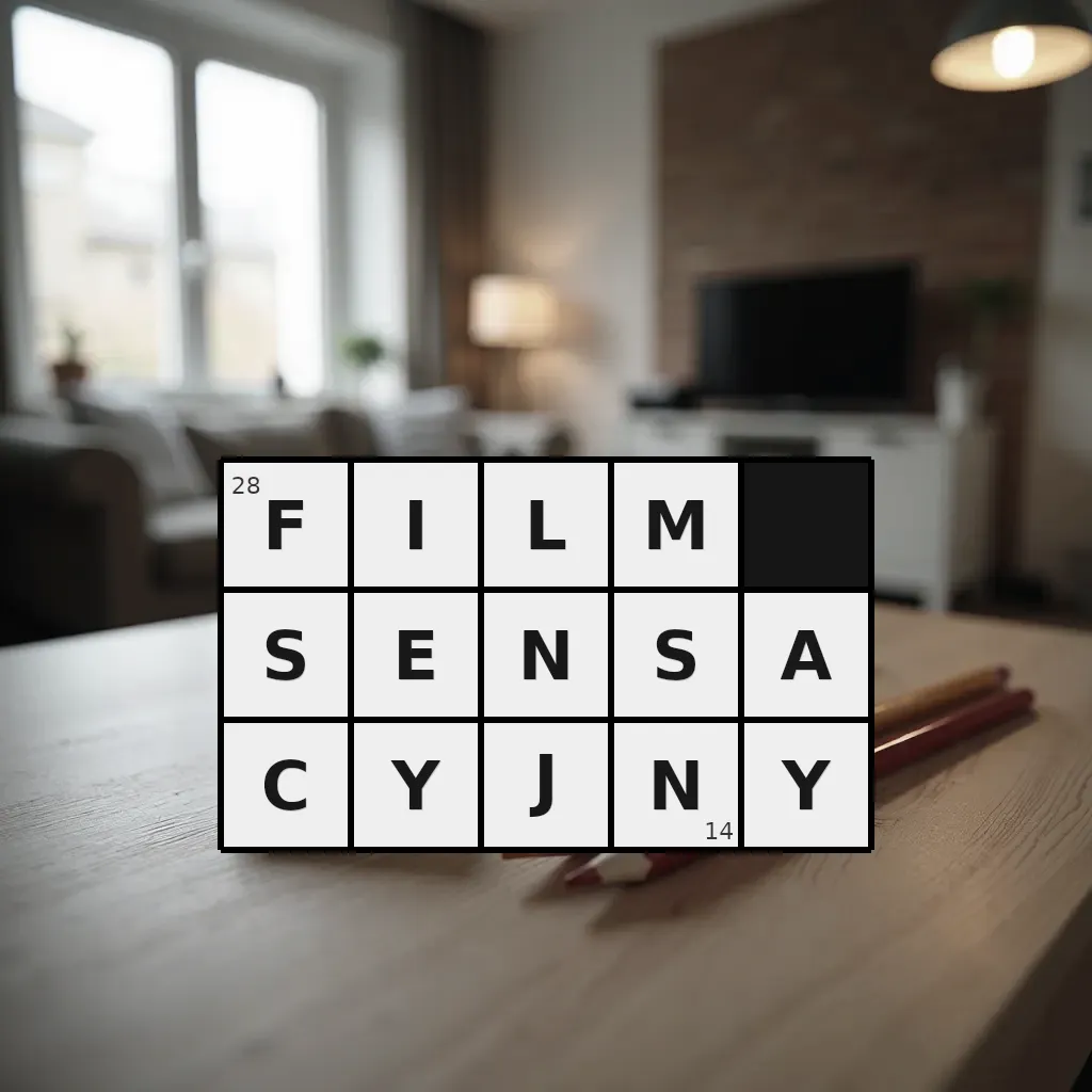 Słowo „film sensacyjny” ma 14 znaków (bez spacji i łączników).