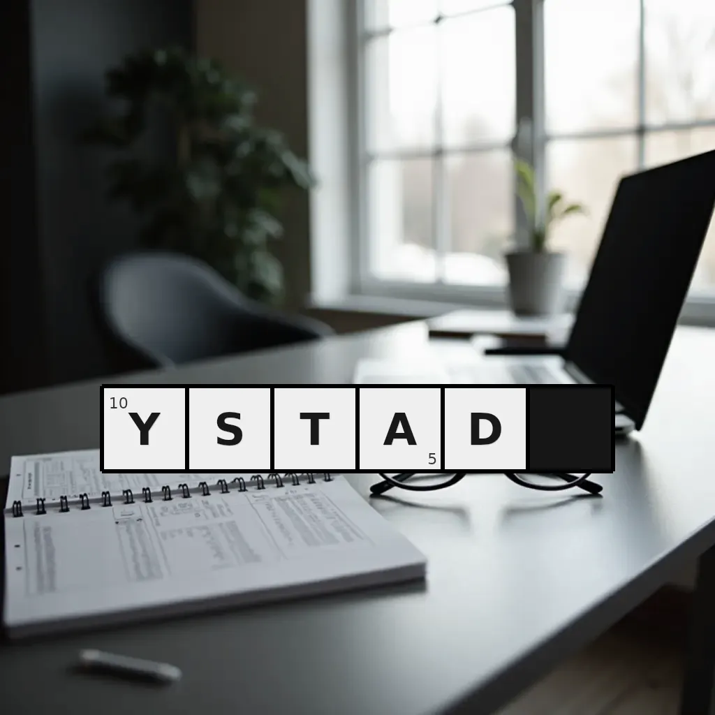 Słowo „ystad” ma 5 znaków (bez spacji i łączników).
