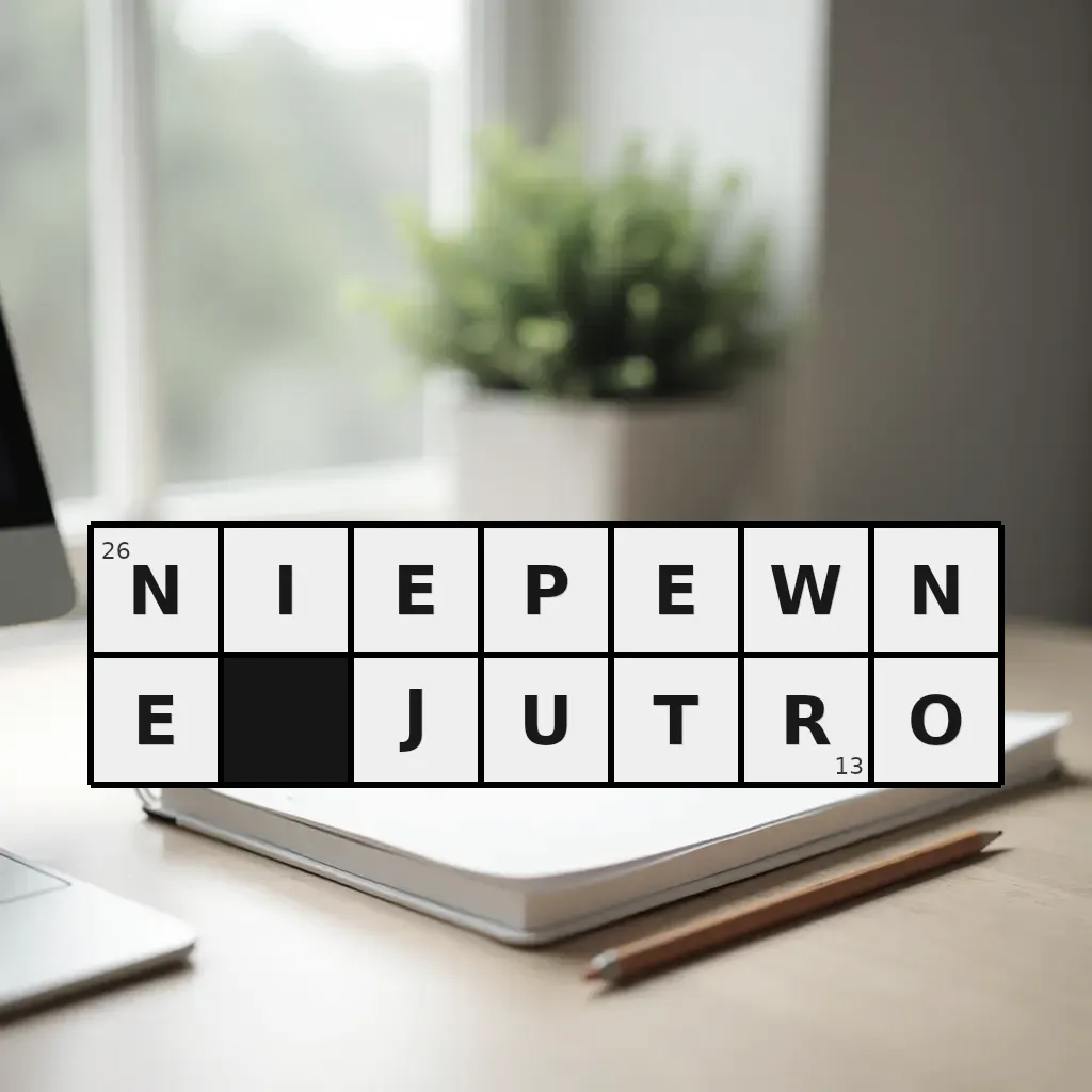 Słowo „niepewne jutro” ma 13 znaków (bez spacji i łączników).