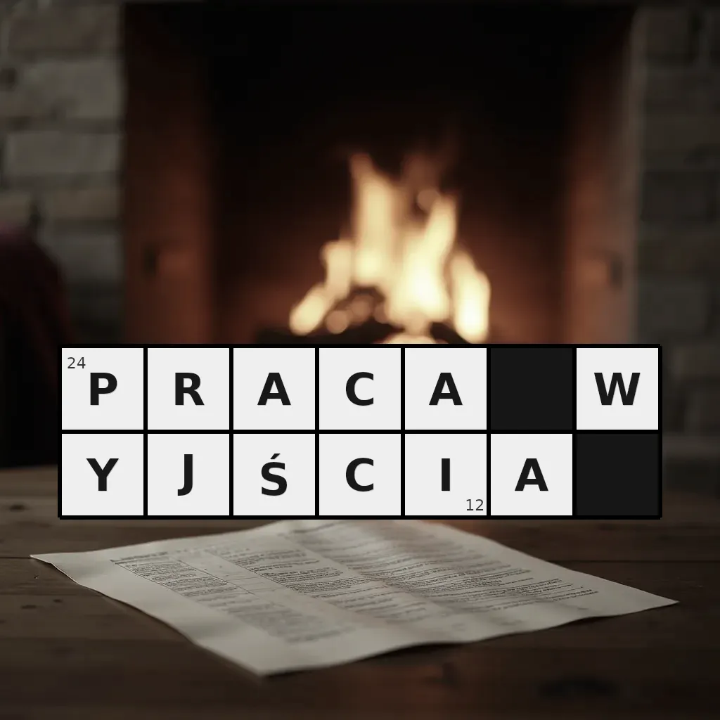 Słowo „praca wyjścia” ma 12 znaków (bez spacji i łączników).