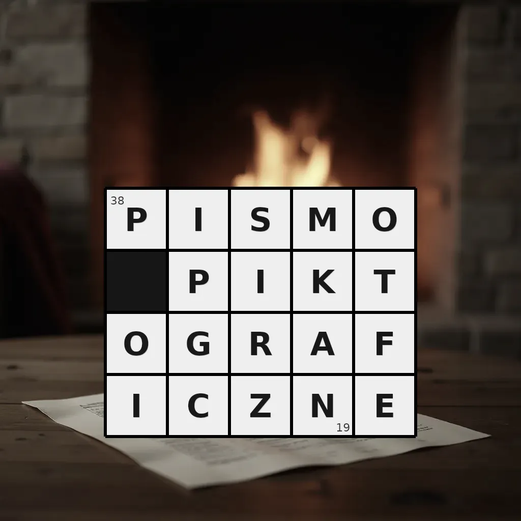 Słowo „pismo piktograficzne” ma 19 znaków (bez spacji i łączników).