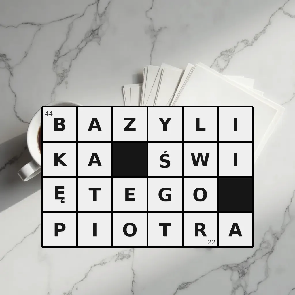 Słowo „bazylika świętego piotra” ma 22 znaki (bez spacji i łączników).