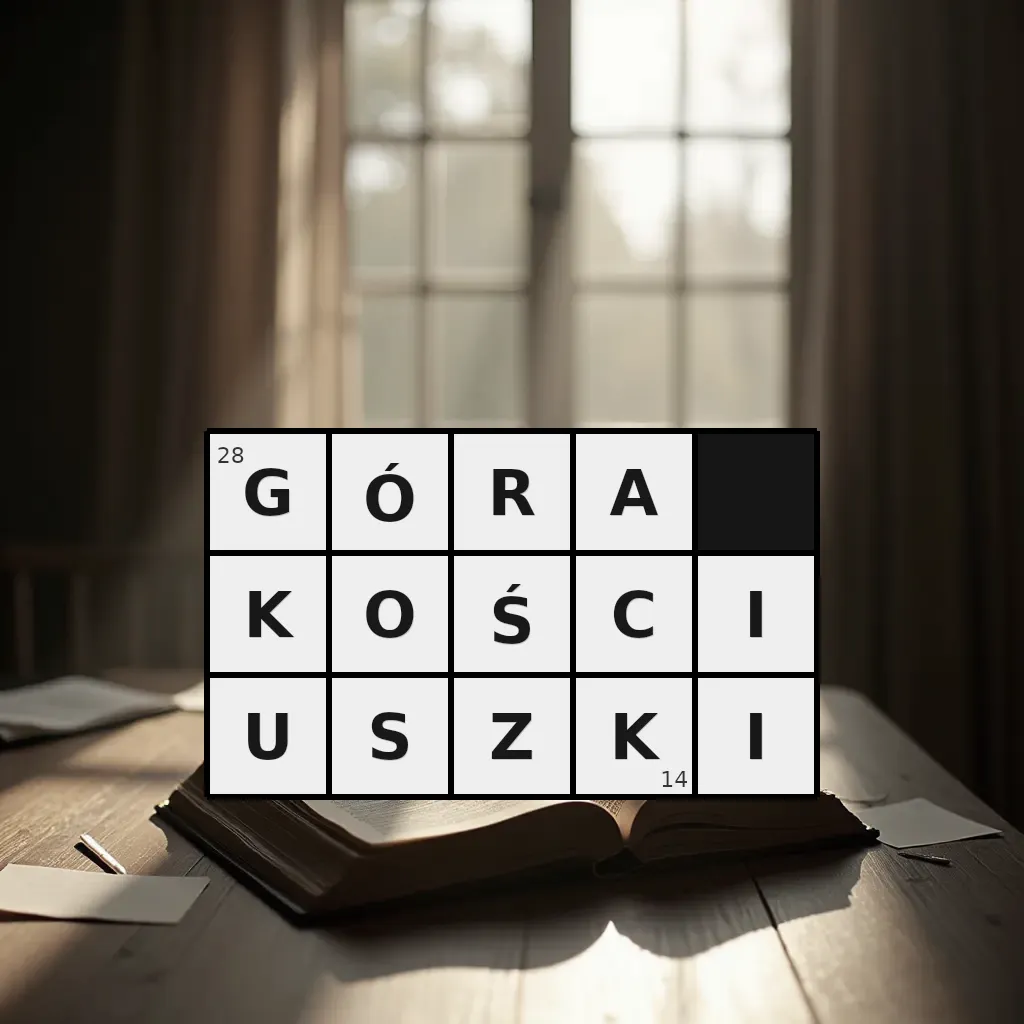 Słowo „góra kościuszki” ma 14 znaków (bez spacji i łączników).