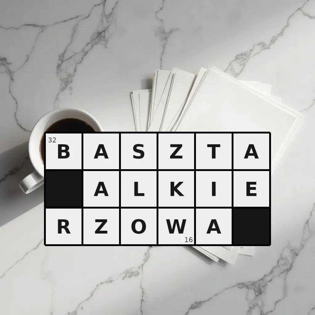 Słowo „baszta alkierzowa” ma 16 znaków (bez spacji i łączników).