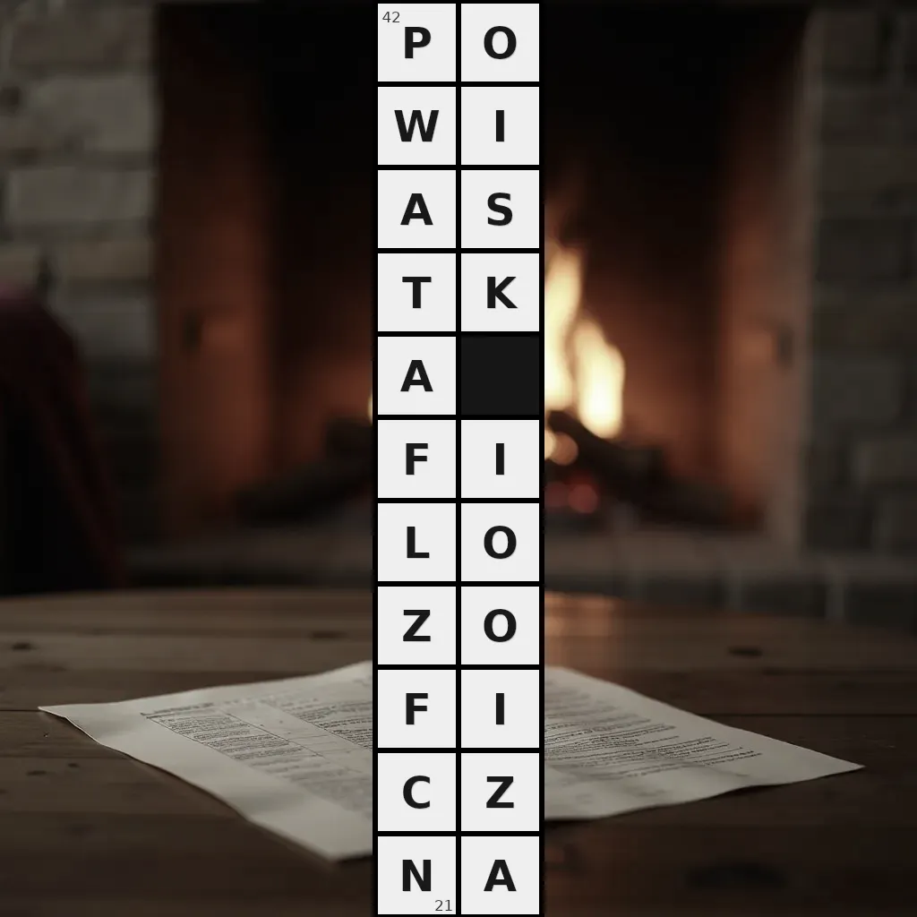 Zawiera litery: A, A, A, C, F, F, I, I, I, K, L, N, O, O, O, P, S, T, W, Z, Z