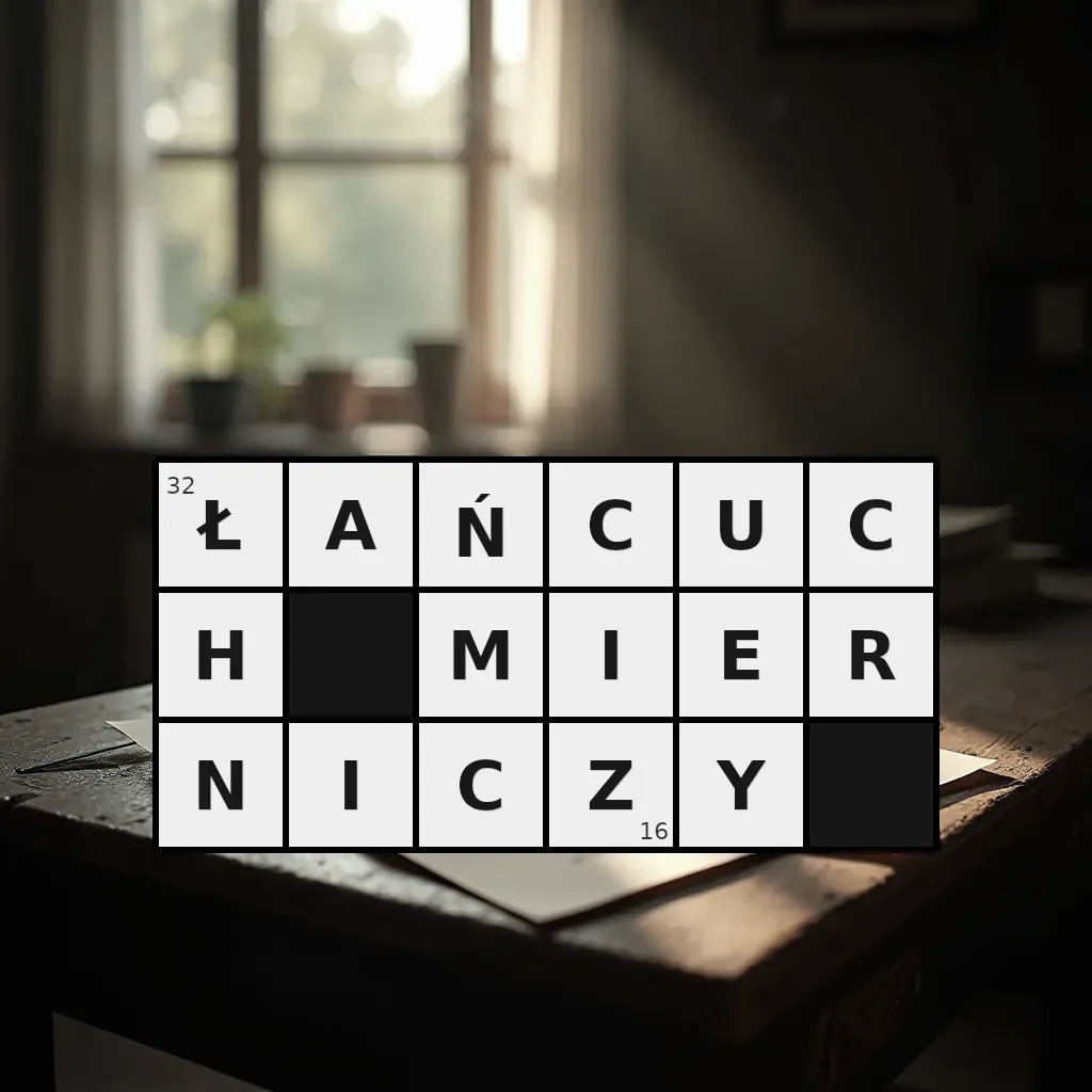 Słowo „łańcuch mierniczy” ma 16 znaków (bez spacji i łączników).