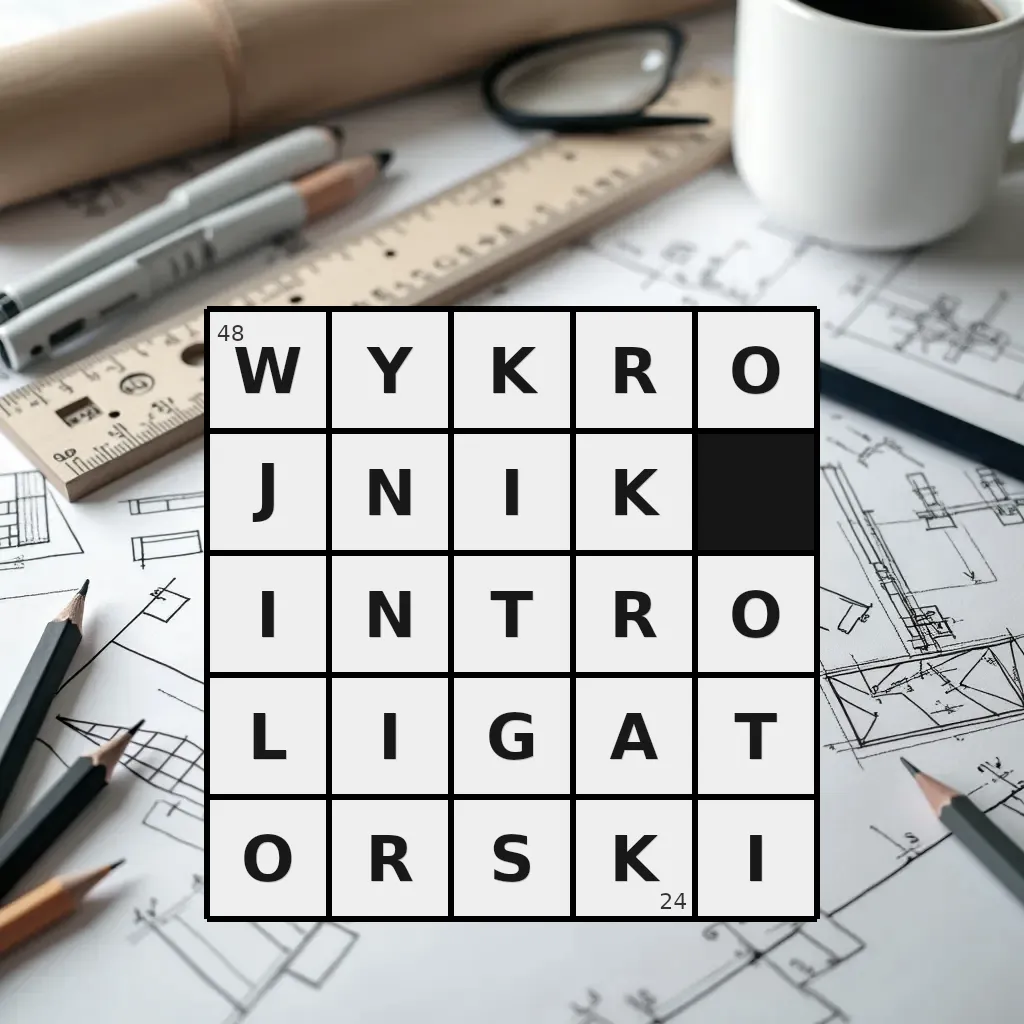 Słowo „wykrojnik introligatorski” ma 24 znaki (bez spacji i łączników).